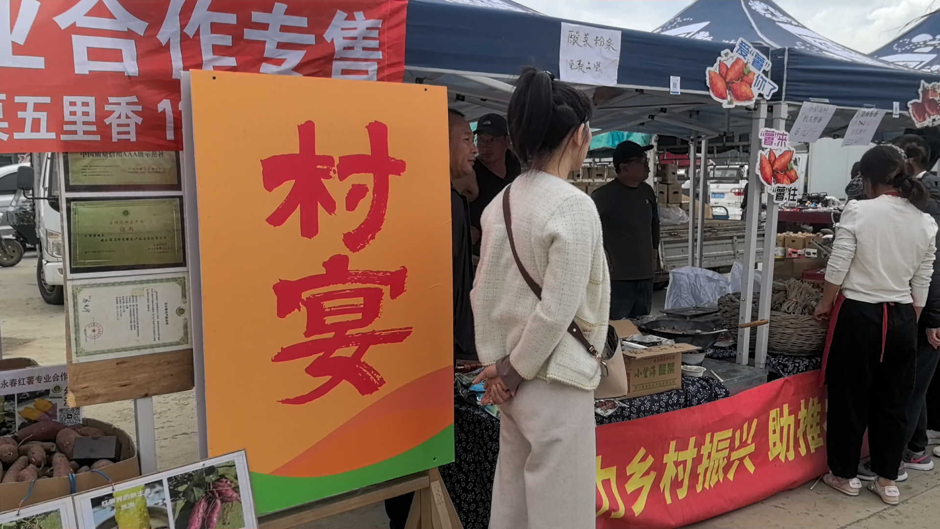 “熱賣”的村產(chǎn),是慶祝豐收的注腳?!按瀹a(chǎn)”展區(qū)中,達(dá)營村的葡萄晶瑩剔透,紅旗堡村的紅肖梨堆成小山,農(nóng)戶們臉上掛著汗珠,聲音洪亮地招呼著往來游客?!敖o我再來一斤!”的吆喝聲此起彼伏。市民夏秀波感嘆:“這兒的產(chǎn)品越來越全,場面也越來越紅火了。”當(dāng)豐收遇到好的銷路,“熱賣”的景象隨處可見。